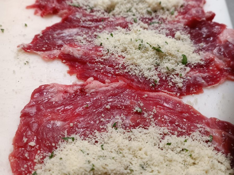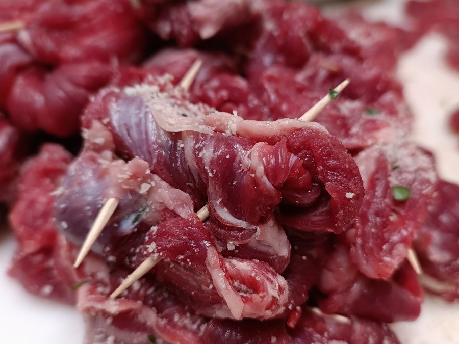 In una ciotola crea il tuo mix composto da formaggio grattugiato, prezzemolo, aglio, sale e pepe. Disponi, poi, questo condimento nella parte centrale, o in quella parte più stretta, della fetta di carne e termina aggiungendo, a piacere, la fettina di lardo o pancetta arrotolata (ma sono buonissime anche nella versione più “light” senza dover aggiungere l’affettato!).